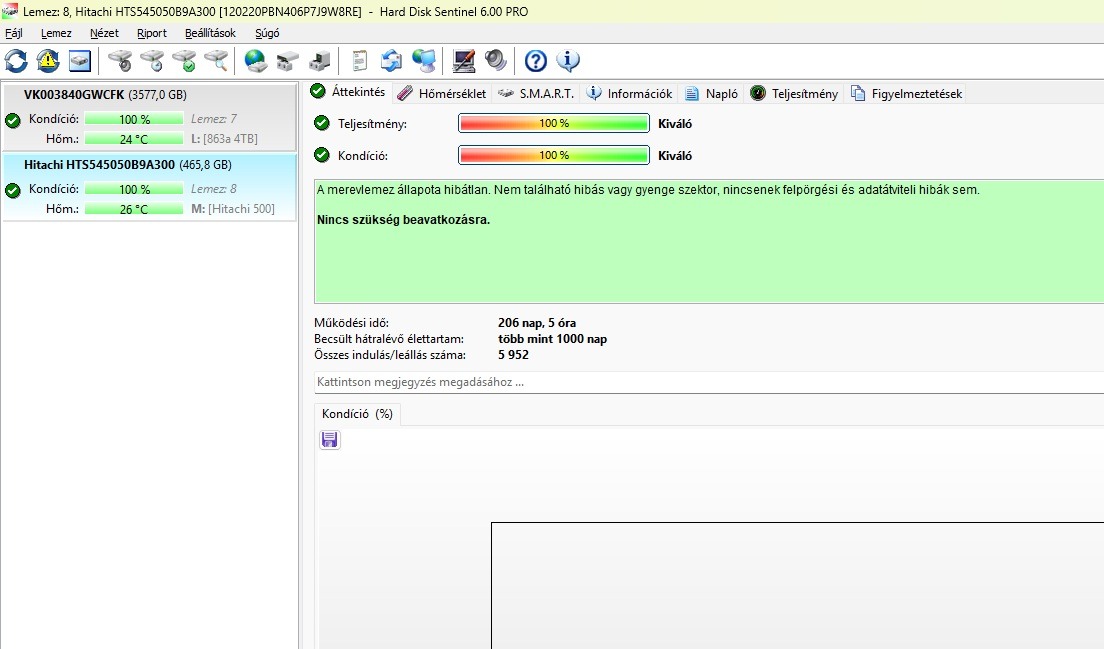 Hitachi 500GB-os HDD, 100/100