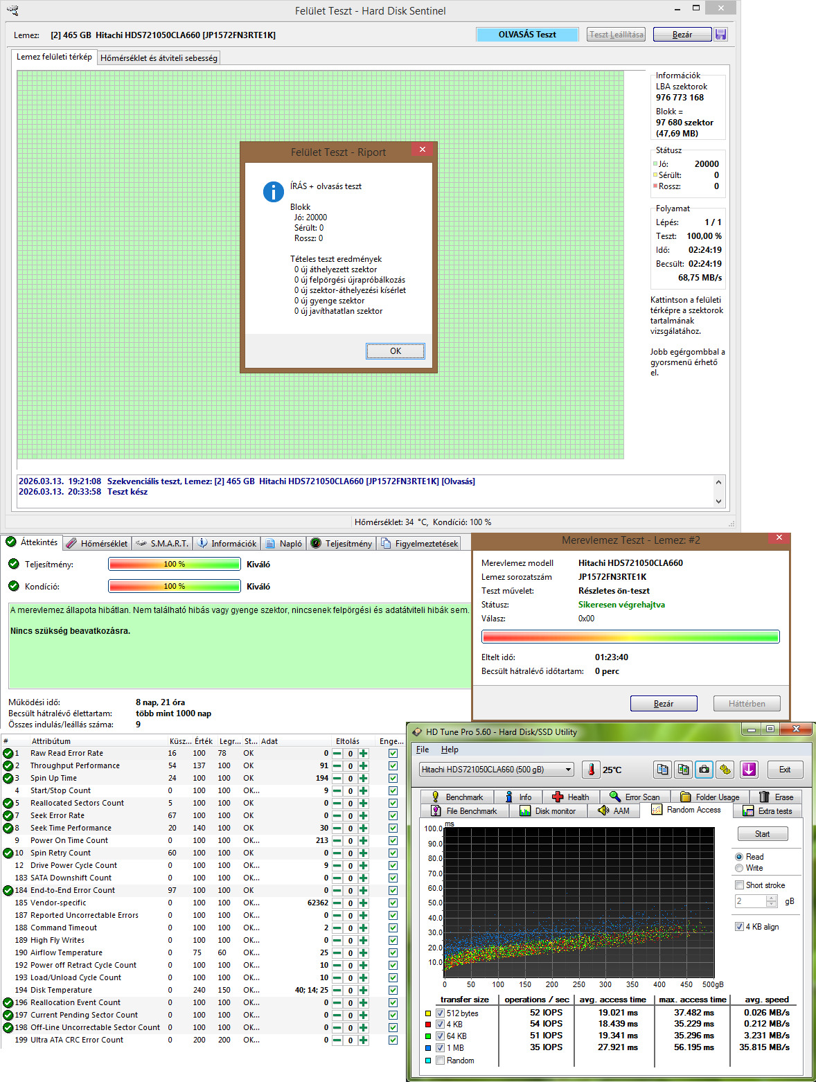 1. Hitachi HDS721050CLA662 500GB 7200RPM 32MB Cache - 8nap 21óra 9indulás - 5k
