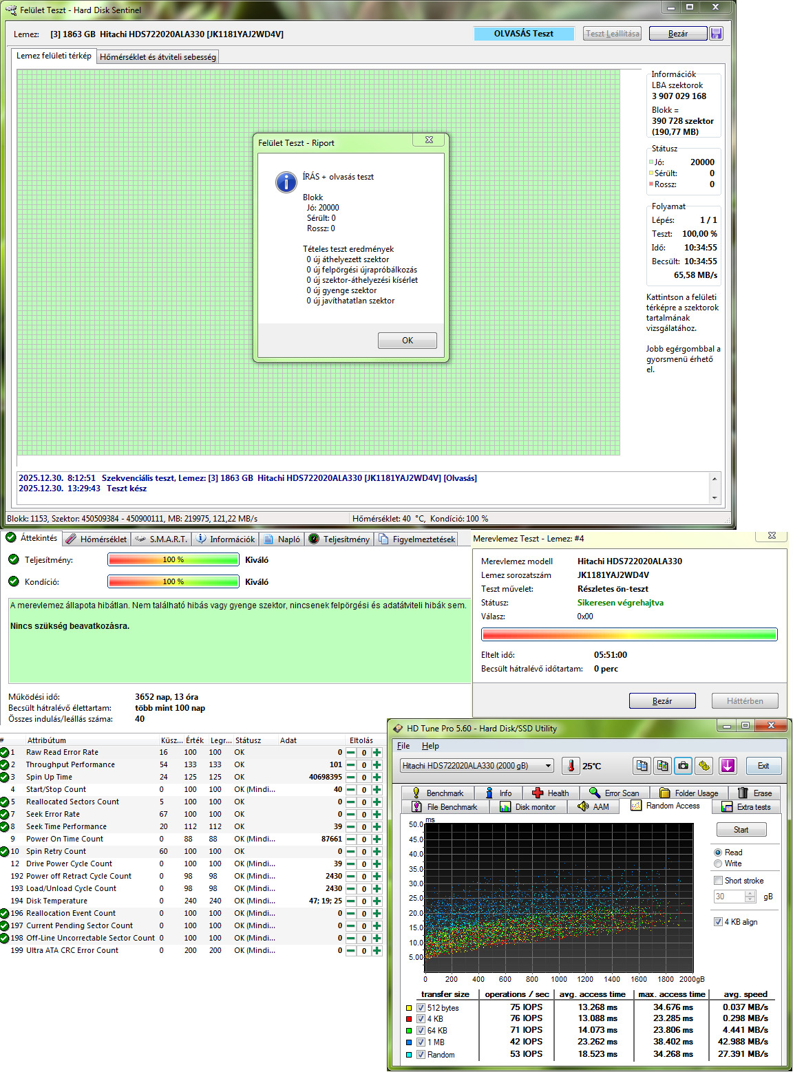 1. Hitachi HUA722020ALA330 2TB 7200RPM CMR SATA2 100/100 - 3652nap 13óra 40indulás 9k
