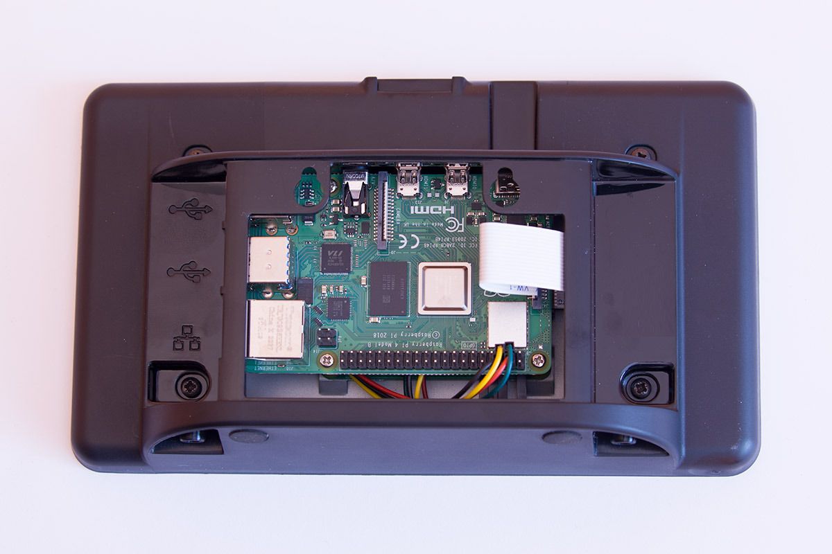 7 hüvelykes érintőképernyőm (6., 7. és 8. kép): 4-es Pi építhető bele, amiről a HomeAssistant vezérelhető. Működhet csak kijelzőként, de akár virtualizálva futtathatjuk rajta a HomeAssistant-et is. Az ára: 25 000,- Ft.