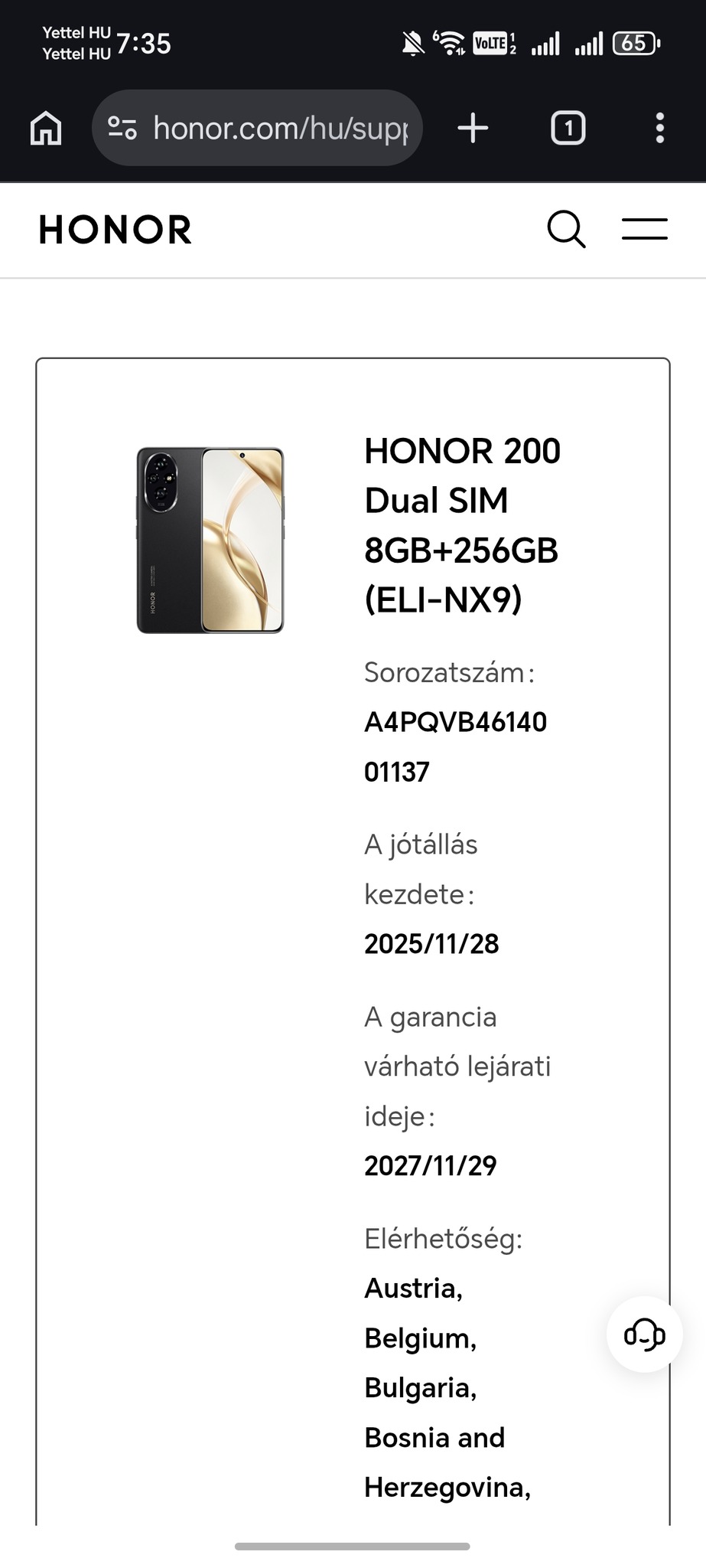 ✅ Hosszú biztonság: Hivatalos Honor gyártói garancia érvényes 2027. november 28-ig! (GSM boltban vásárolva, ahol plusz 1 év bolti garanciát is adtak hozzá).