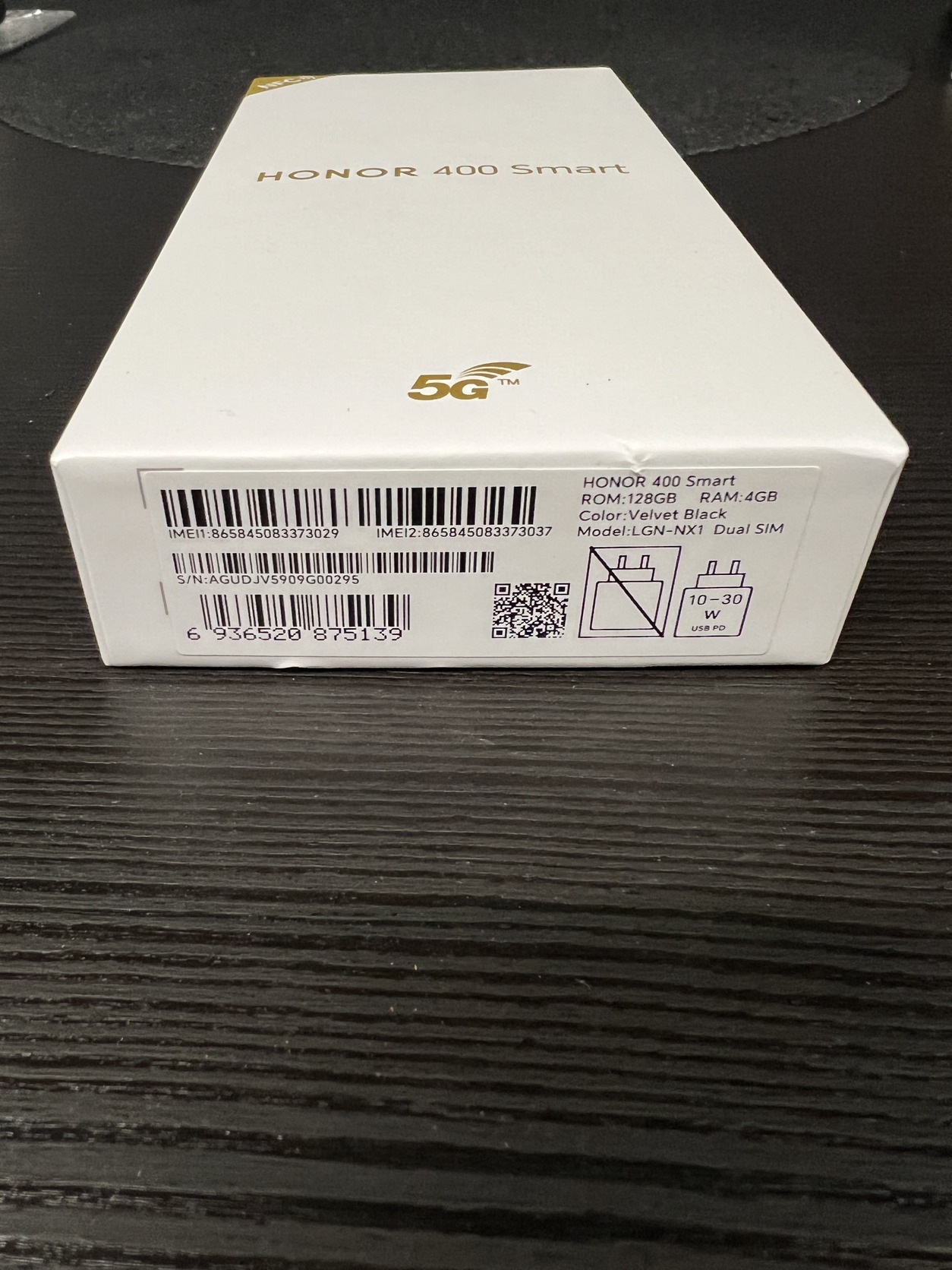 Eladó a címben említett HONOR 400 Smart 5G készülék. 4GB Rom, 128GB tárhely, velvet black szín, valamint dual simes.