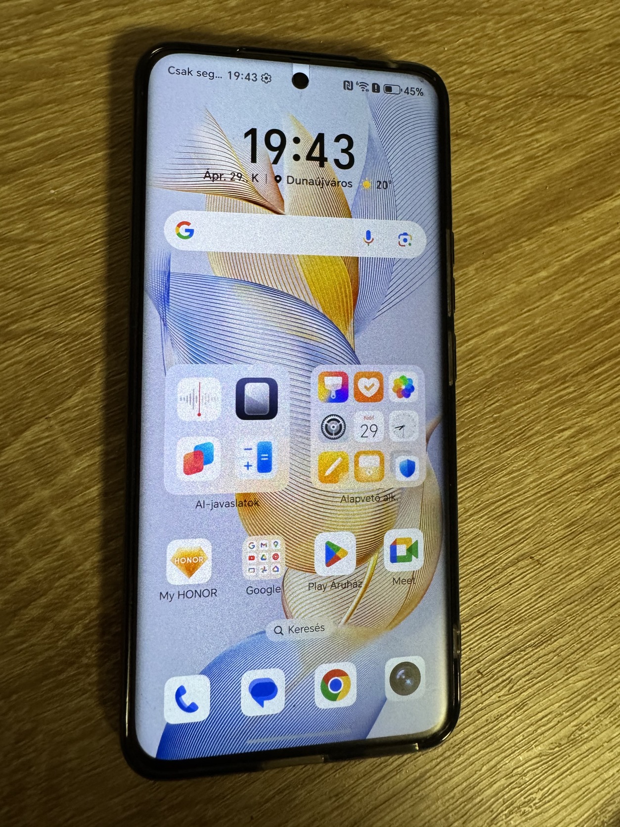 Eladó a képen látható HONOR 90 kártyafüggetlen mobiltelefon, egykét karc meg minimális ütődés a sarkain, betekintésgátló fóliával, átlátszó tokkal és töltővel adom.