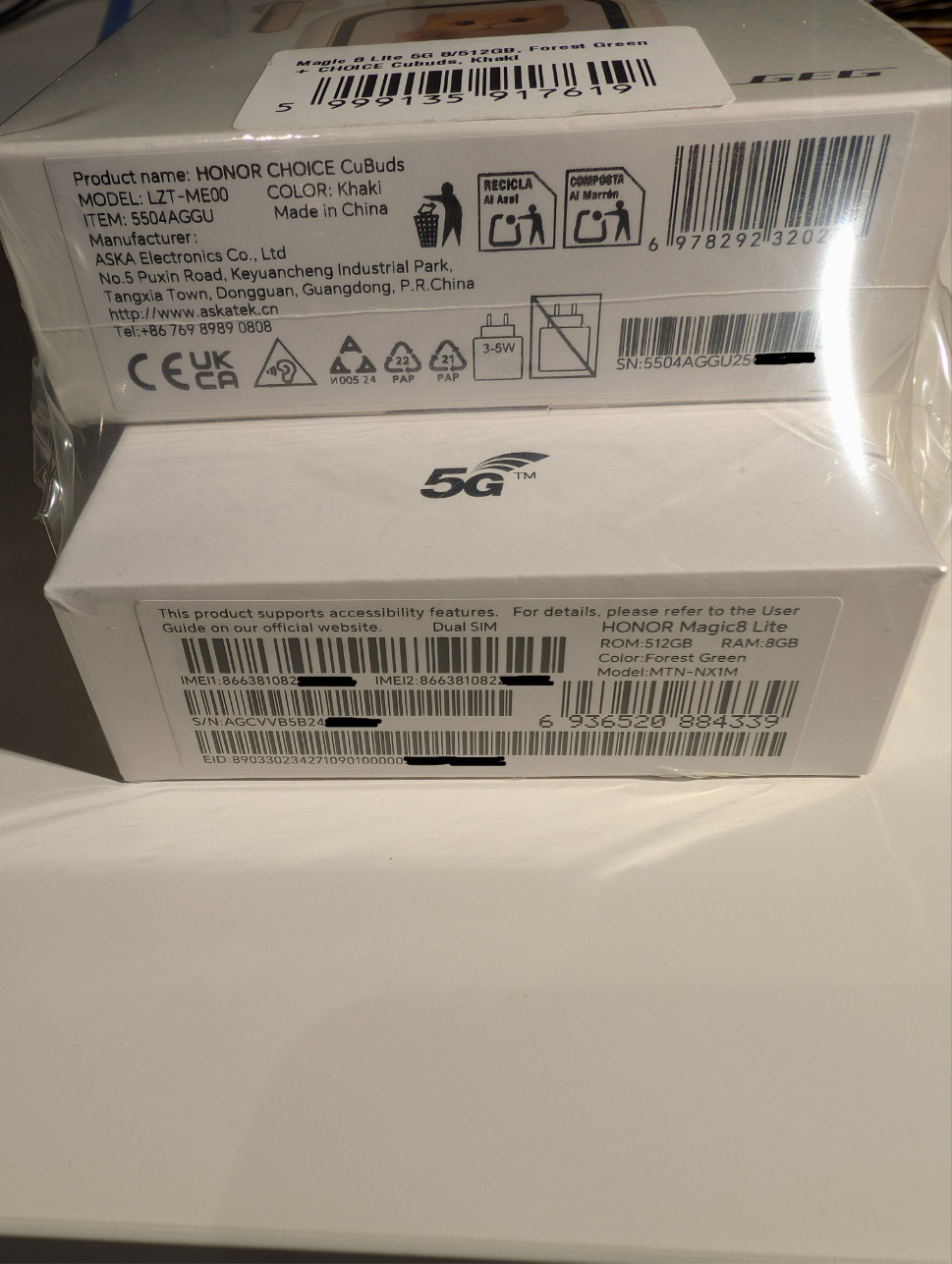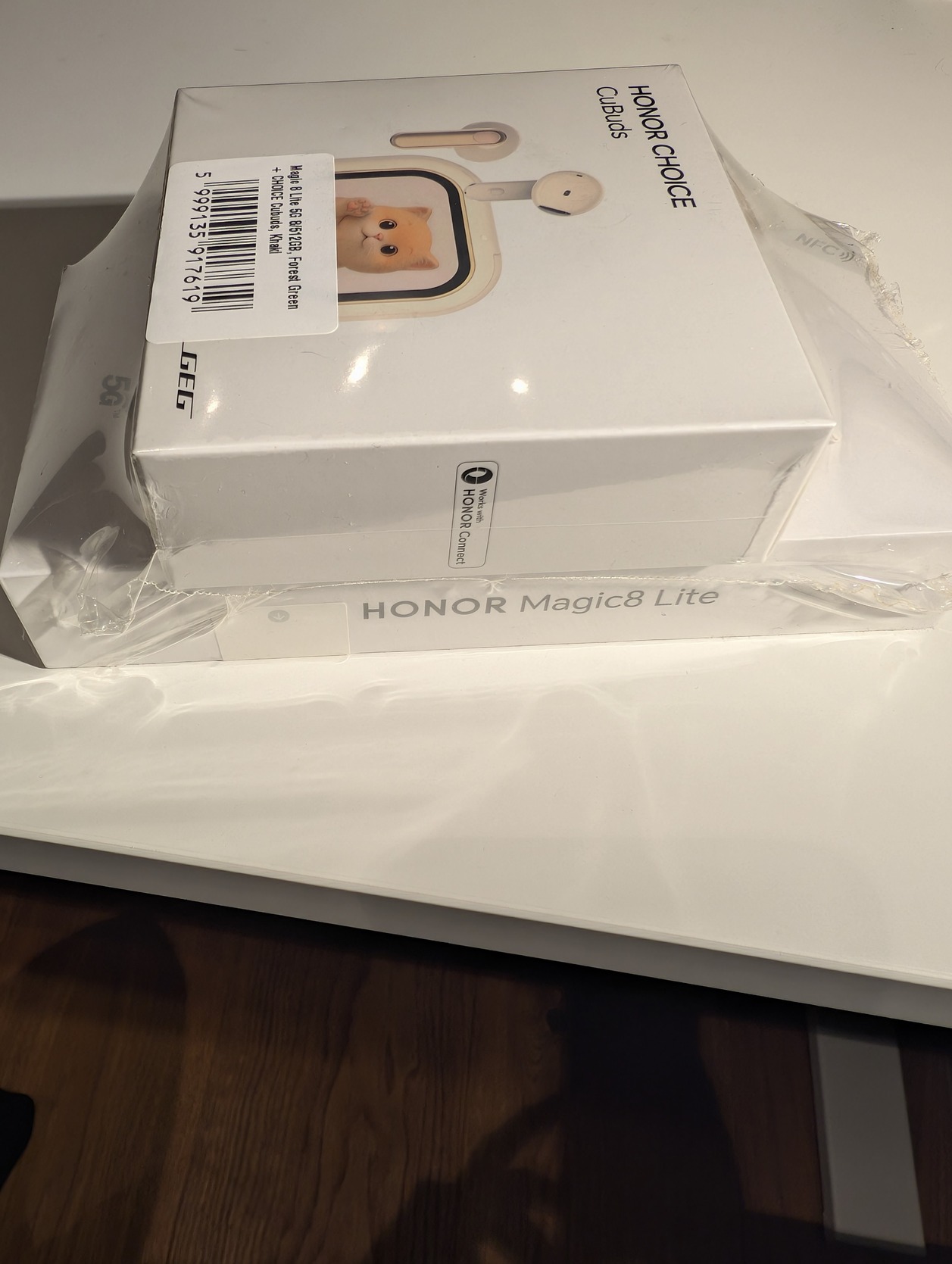 Eladó egy szettben lévő, gyári bontatlan HONOR Magic8 Lite 5G okostelefon (Forest Green) és egy HONOR CHOICE Cubuds vezeték nélküli fülhallgató (Khaki).