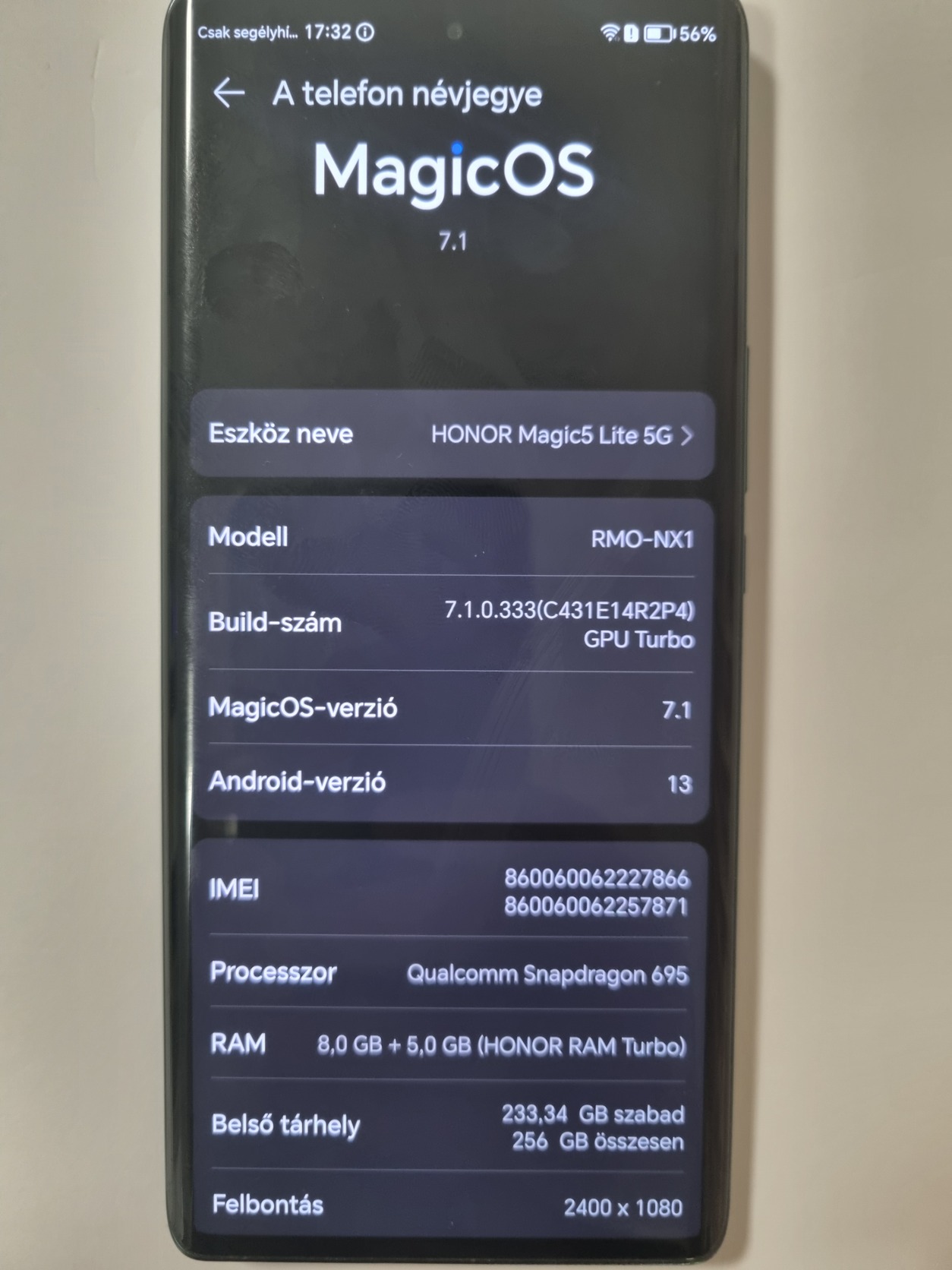Eladó használt Honor magic 5 lite készülék. Szép állapotban, csak a készülék, tartozékok nélkül. Akkumulátor normál. Egy szilikontok van hozzá. Személyesen Szigethalom vagy foxposttal tudom küldeni. Halványzöld szín.