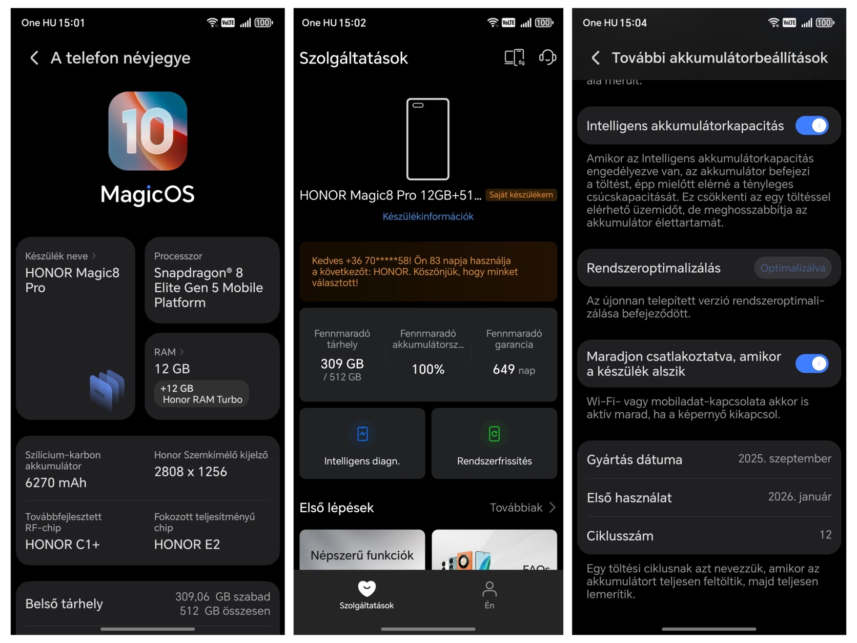 Eladó egy karcmentes, teljesen újszerű, hálózatfüggetlen, fekete Honor Magic 8 Pro.