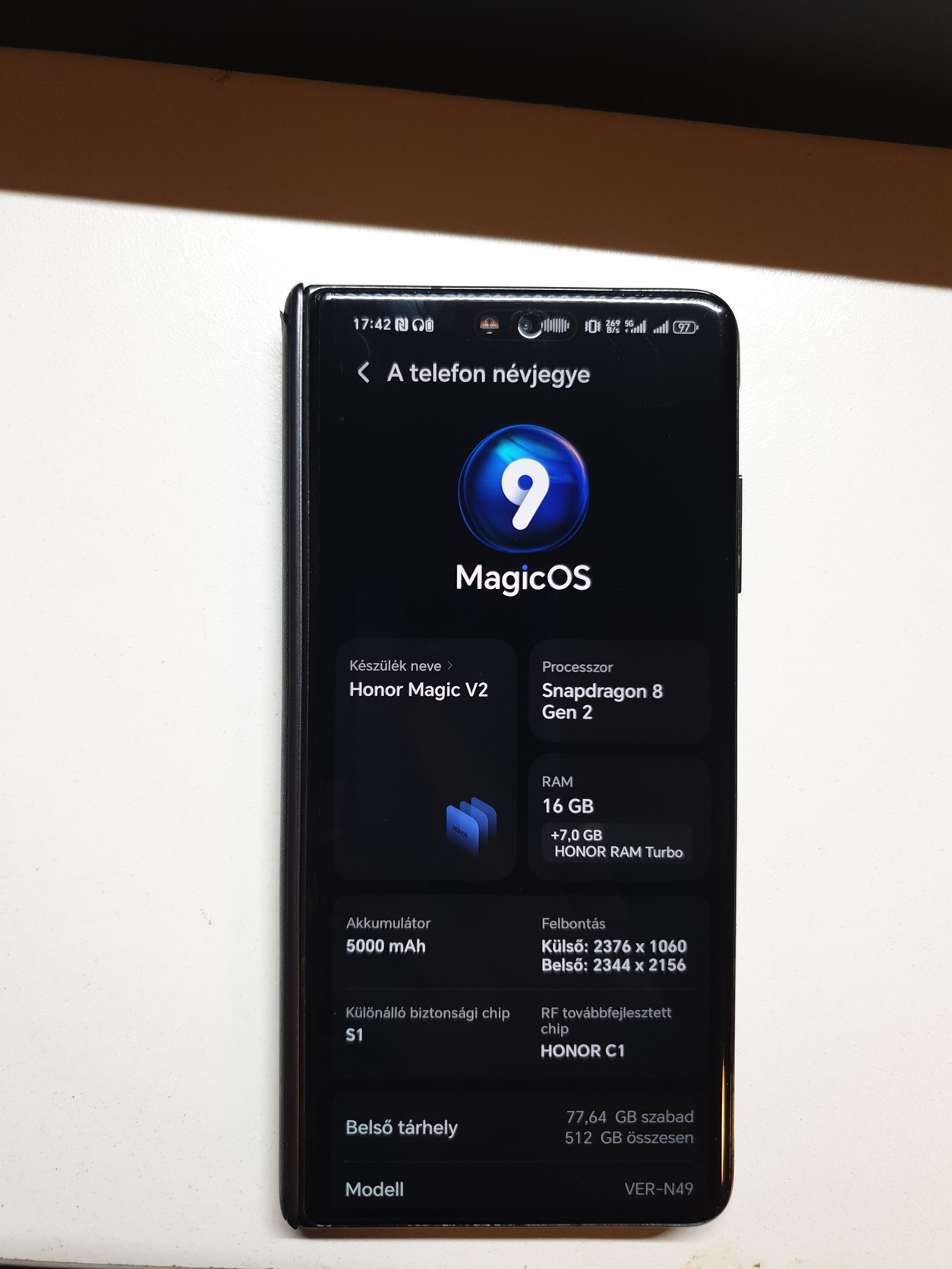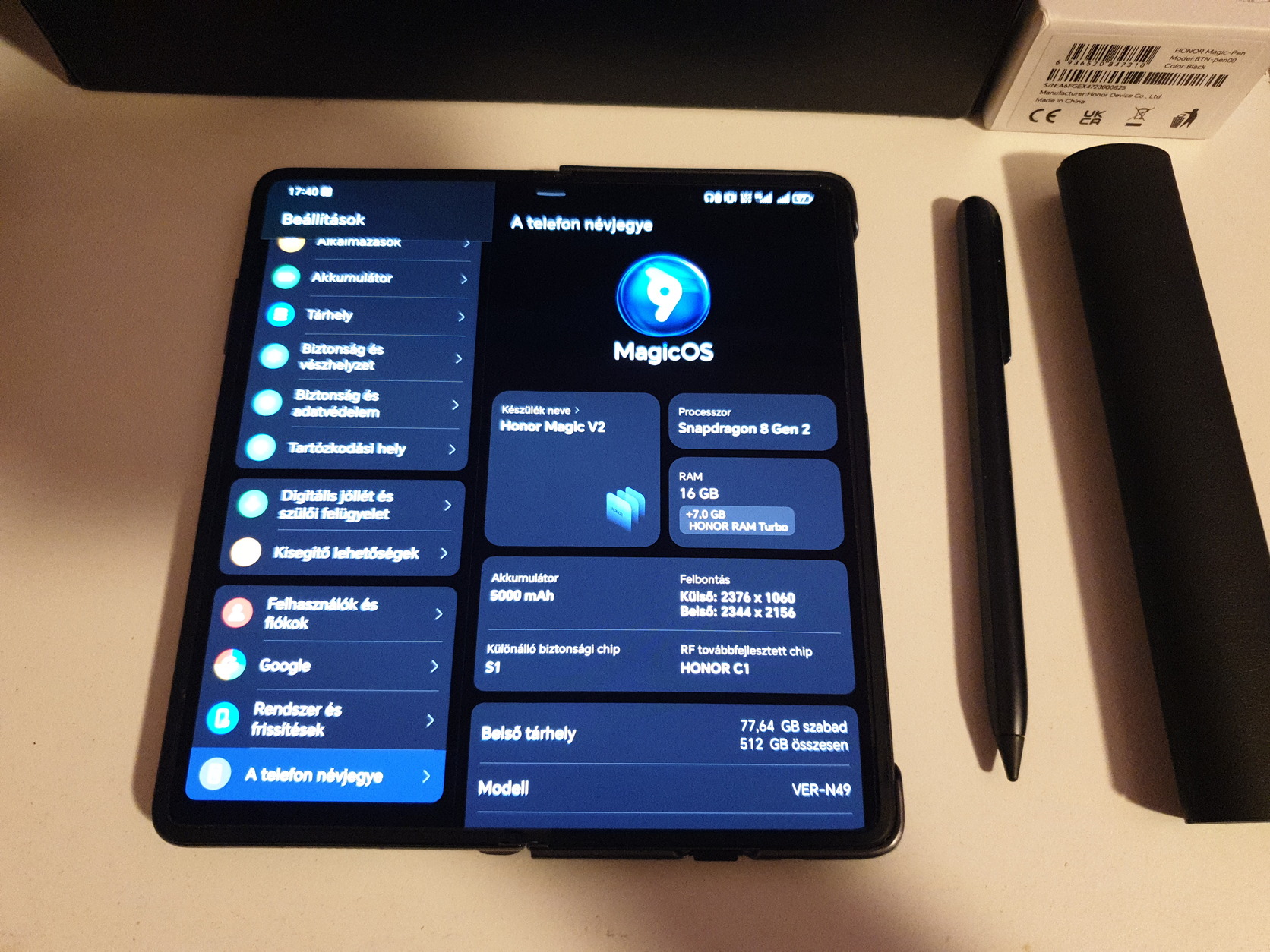 Honor Magic V2 - 16/512 DS Független Garanciás, extrákkal