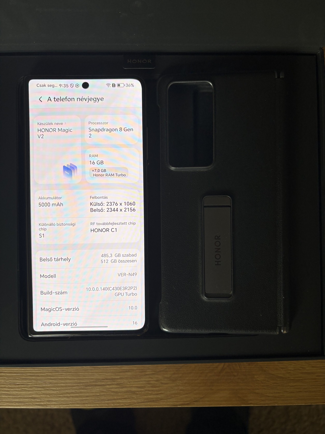 Eladó Honor Magic V2 fekete színű foldable okostelefon.