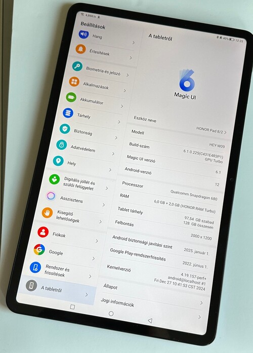 12" képátló, 128 GB, 8 GB RAM.