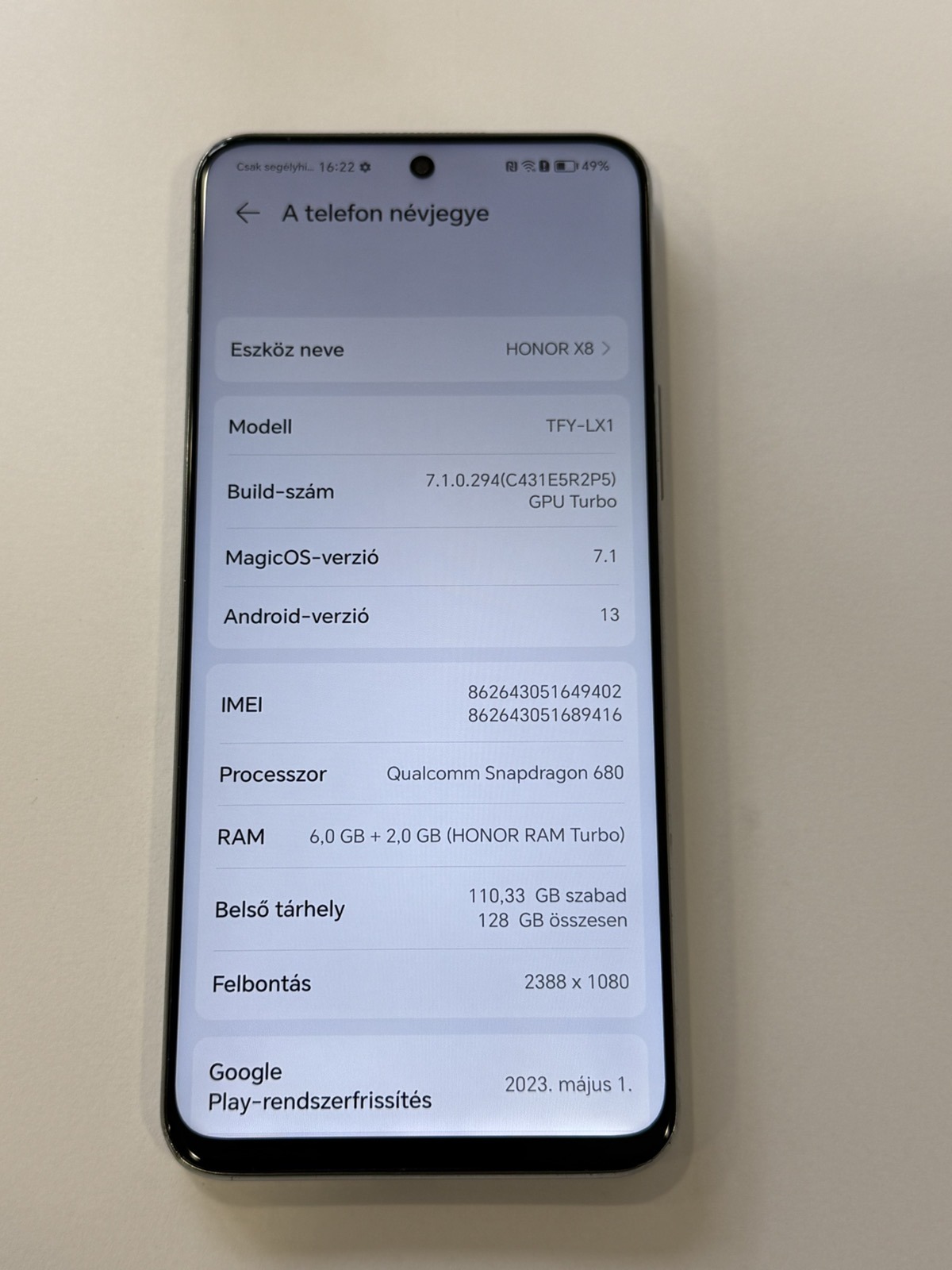Típus : Honor X8 4G