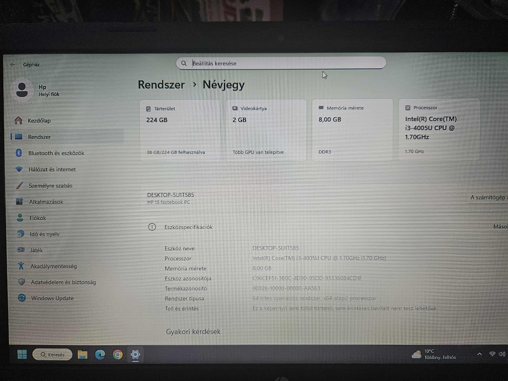 4. generációs i3 as! nem gyorsaság bajnok de nem is lassú, alap dolgokra netezni filmezni megfelel