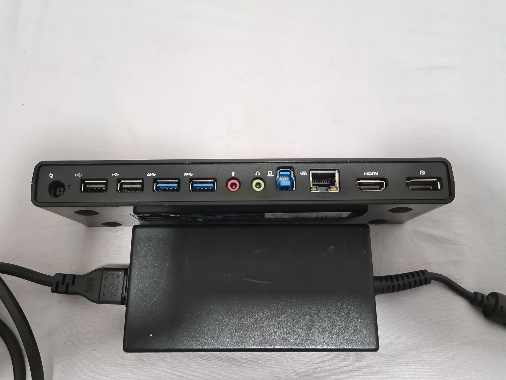Akár 6 USB-kiegészítő csatlakoztatásához szükséges összes port; 4 USB 2.0 USB-port, 2 USB 3.0-port; fejhallgató- és mikrofonportok, gigabites Ethernet kapcsolat (10/100/1000); HDMI, DisplayPort, tápellátás bemenete, USB 3.0-kimenet, zárnyílás