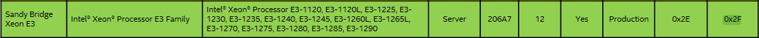 A legutolsó, 00.02.33 verziójú BIOS-ra frissítettem, ez tartalmazza a 0x2F verziójú Intel mikrokód frissítést, így a legtöbb Sandy Bridge asztali és Xeon E3 szerver CPU-k (elvileg) kompatibilisek a géppel.