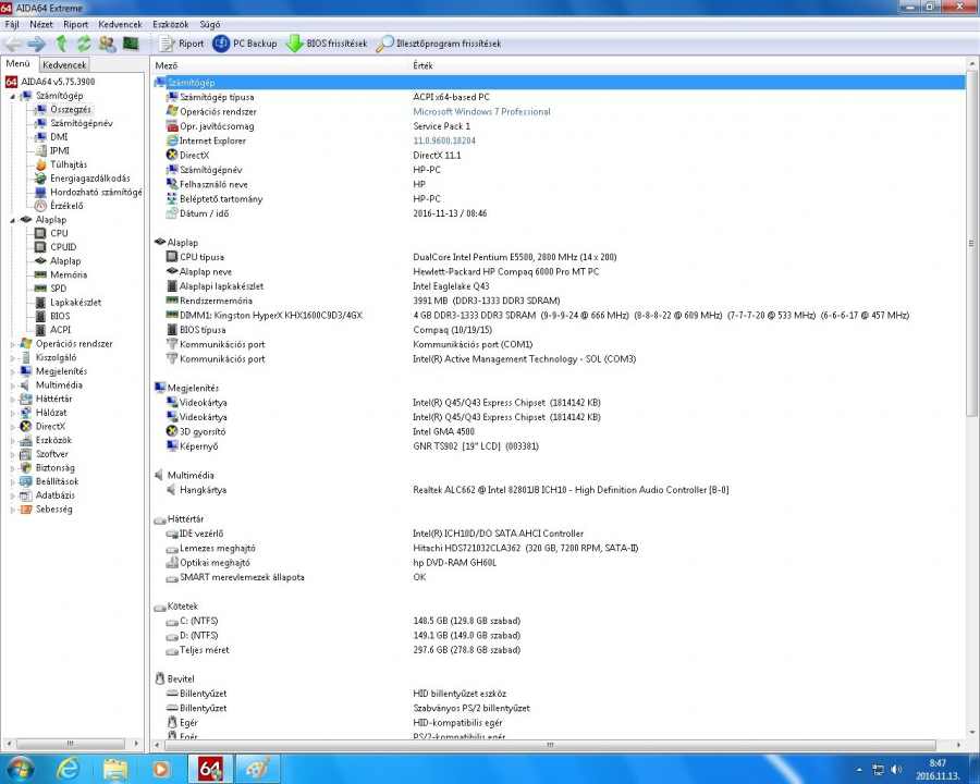 HP Compaq 6000 Pro MT 4GB DDR3 RAM, 320GB HDD, Jogtiszta Windows7