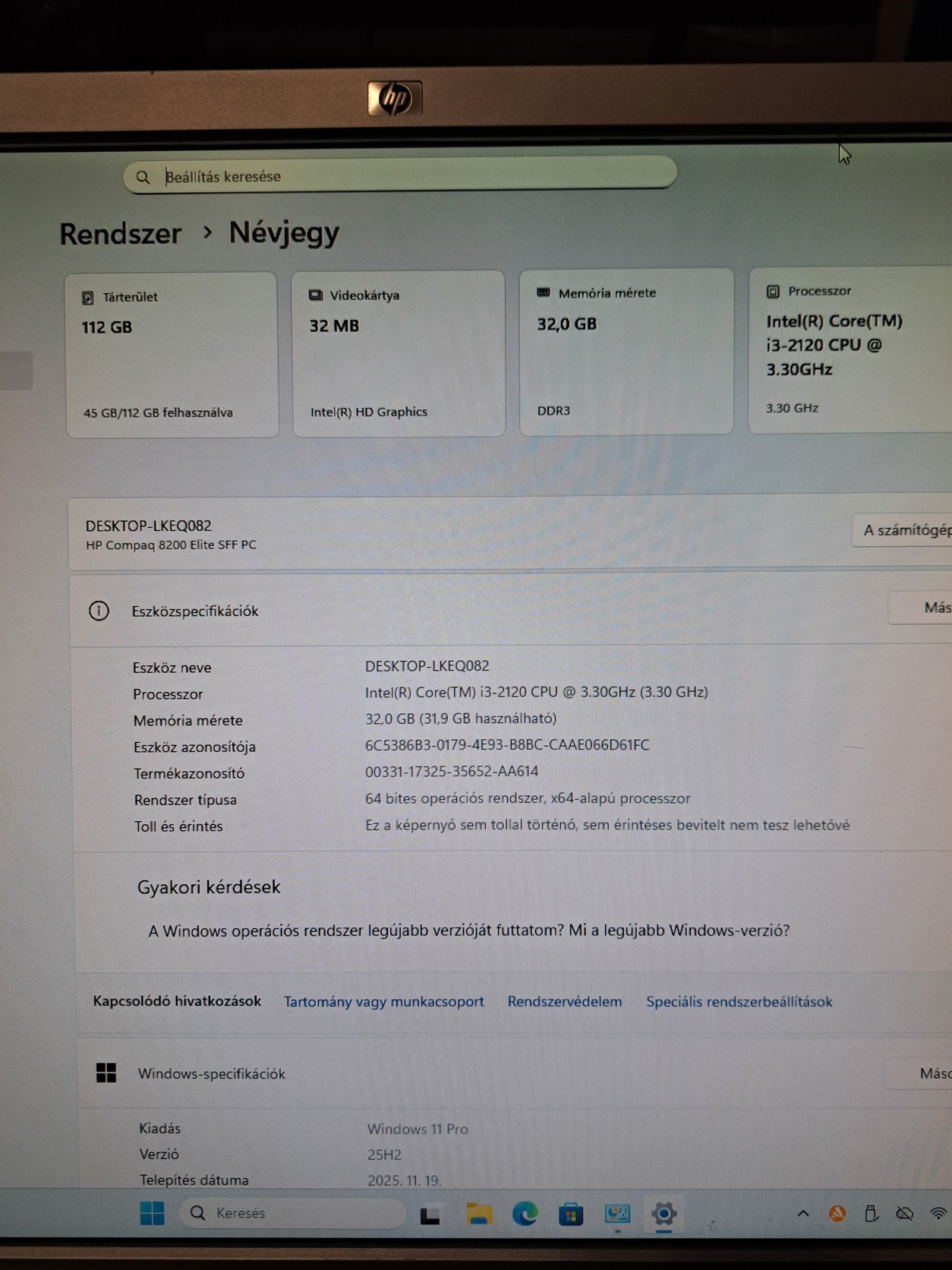 Eladó a képeken latható, hibátlan, kis fogyasztású, HP Compaq 8200 Elite SFF számítógép, Intel Core i3 2120 3,30Ghz ,32Gb ddr3, 120Gb Kingston Ssd, alaplapi Intel Hd videókártya, lehet bővíteni low profilú videókártyával, akár játékra is, wifi, Windows11.....kezeli az i3/i5/i7 processzorokat, gyors, csendes , kis figyasztású gép...