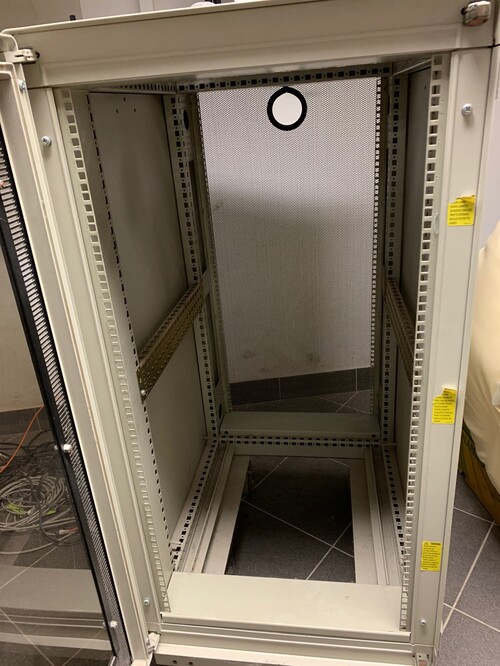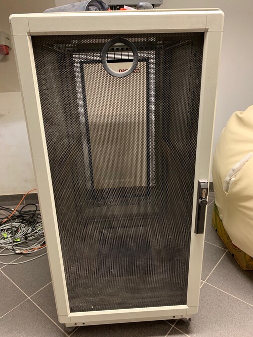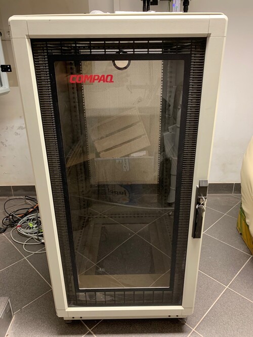 Eladó egy HP/COMPAQ alló, guruló rack szekrény (22U), jó állapotban, elöl plexi, hátul perforált ajtóval.
