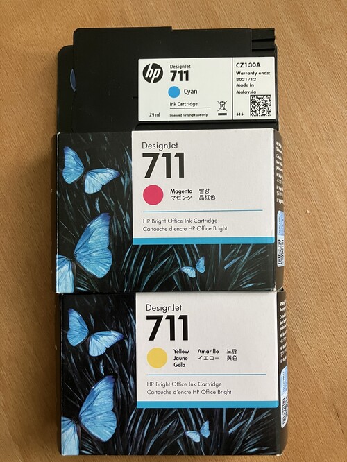 Eladó bontatlan tintapatronok eladók (és egy cián szín ami egy hármas csomag részeként maradt meg)