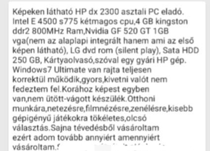 Sziasztok! Eladó a képen látható Hp dx 2300 asztali pc. A specifikációja a mellékelt fotón látható. A szállítás megbeszélés tárgya! Érdeklőni üzenetben. Köszönöm..