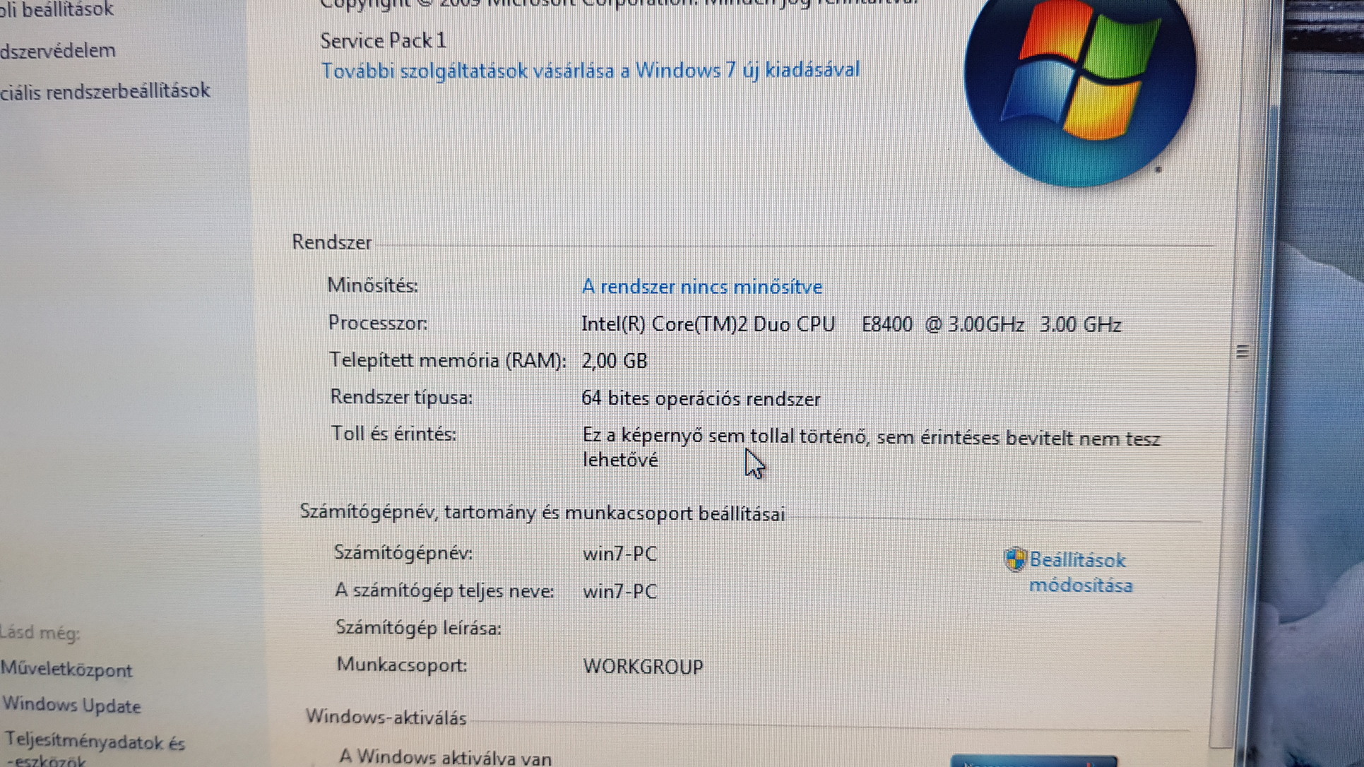Aktivált Win7-el.