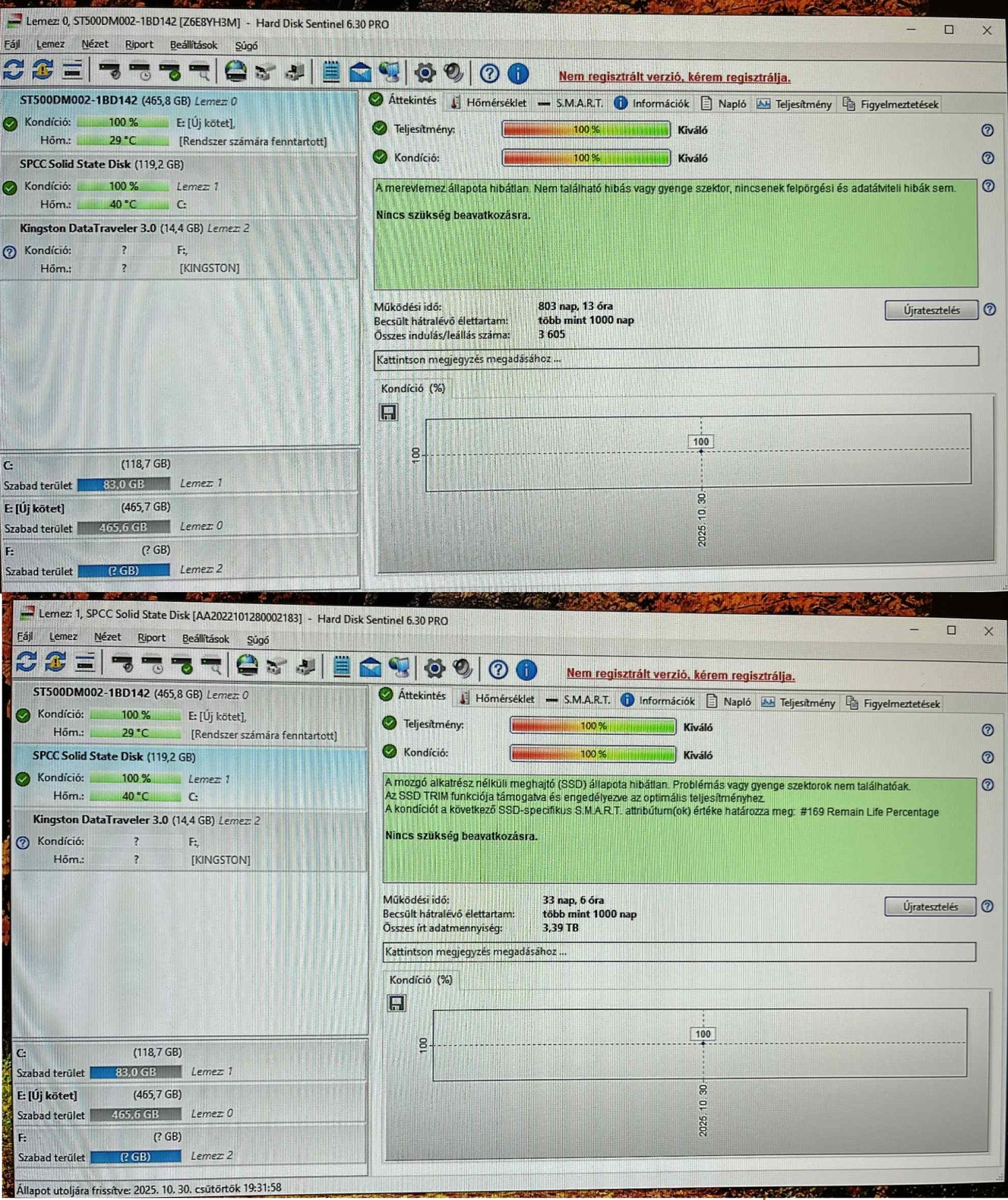 SSD: Silicon Power 128GB 100/100 (33 napot futott csak)