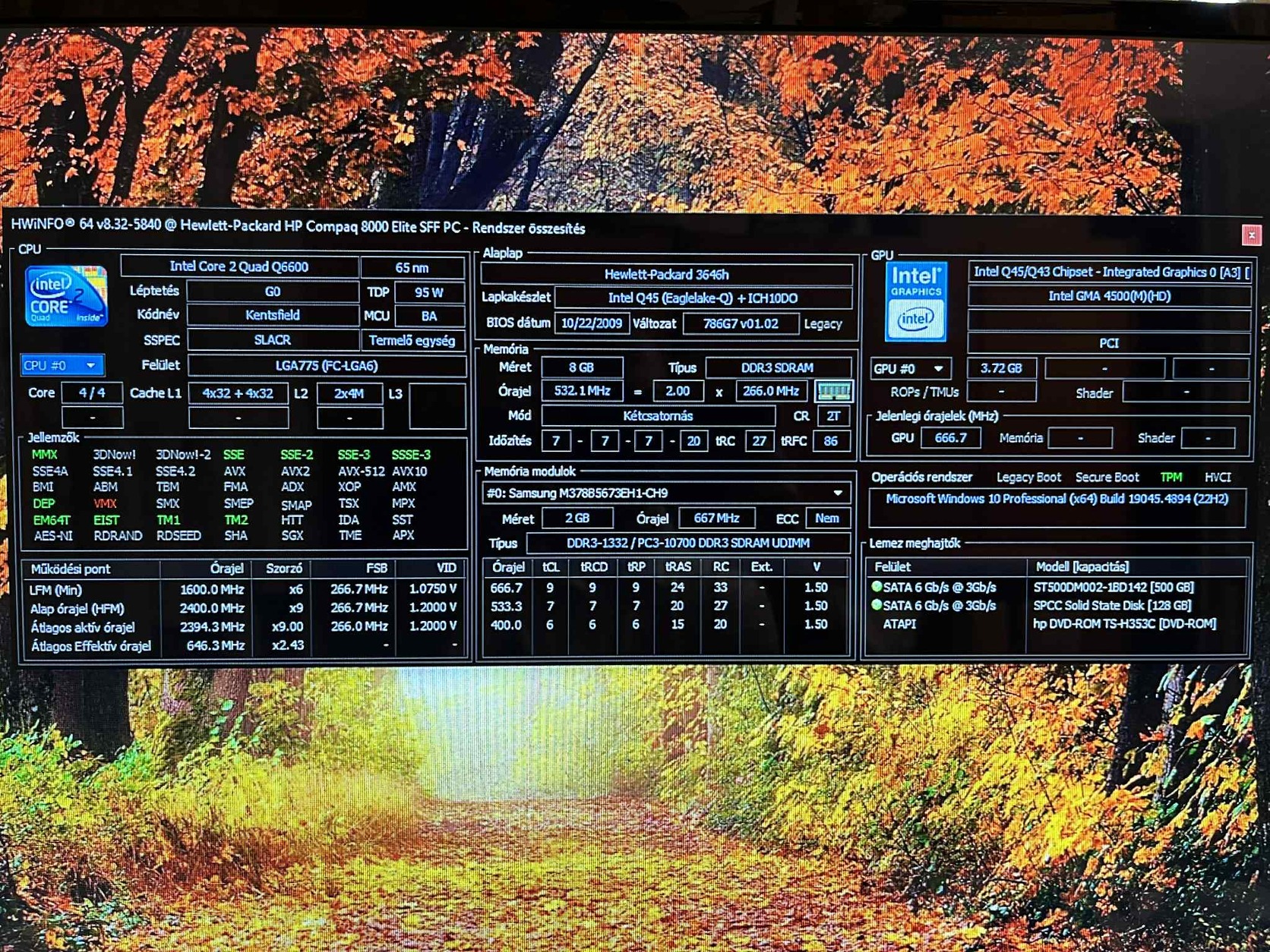 HP Elite 8000 SFF Q6600 8GB DDR3 128GB SSD 500GB HDD HD4500