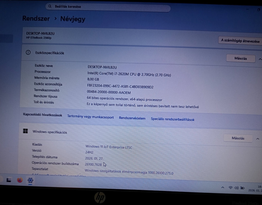 Eladó egy újszerű, szép állapotú HP EliteBook 2560p típusú laptop.