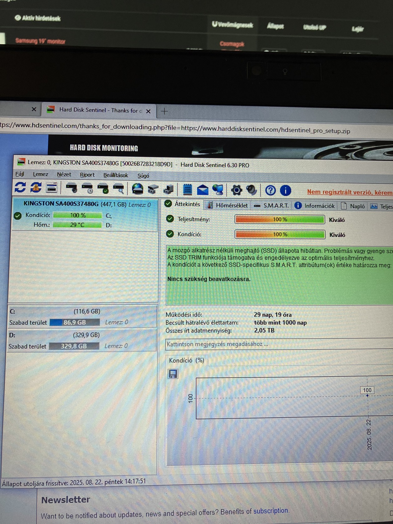 Háttértár: 480 GB Kingston SSD (100%)