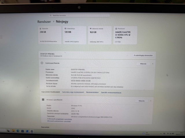 HP ELITEBOOK 840 G7 laptop, 14 hüvelykes,I5 10310U, 16 GB RAM, 256 GB SSD, Full HD, Bluetooth 5.0 Magyar világítós billentyűzet