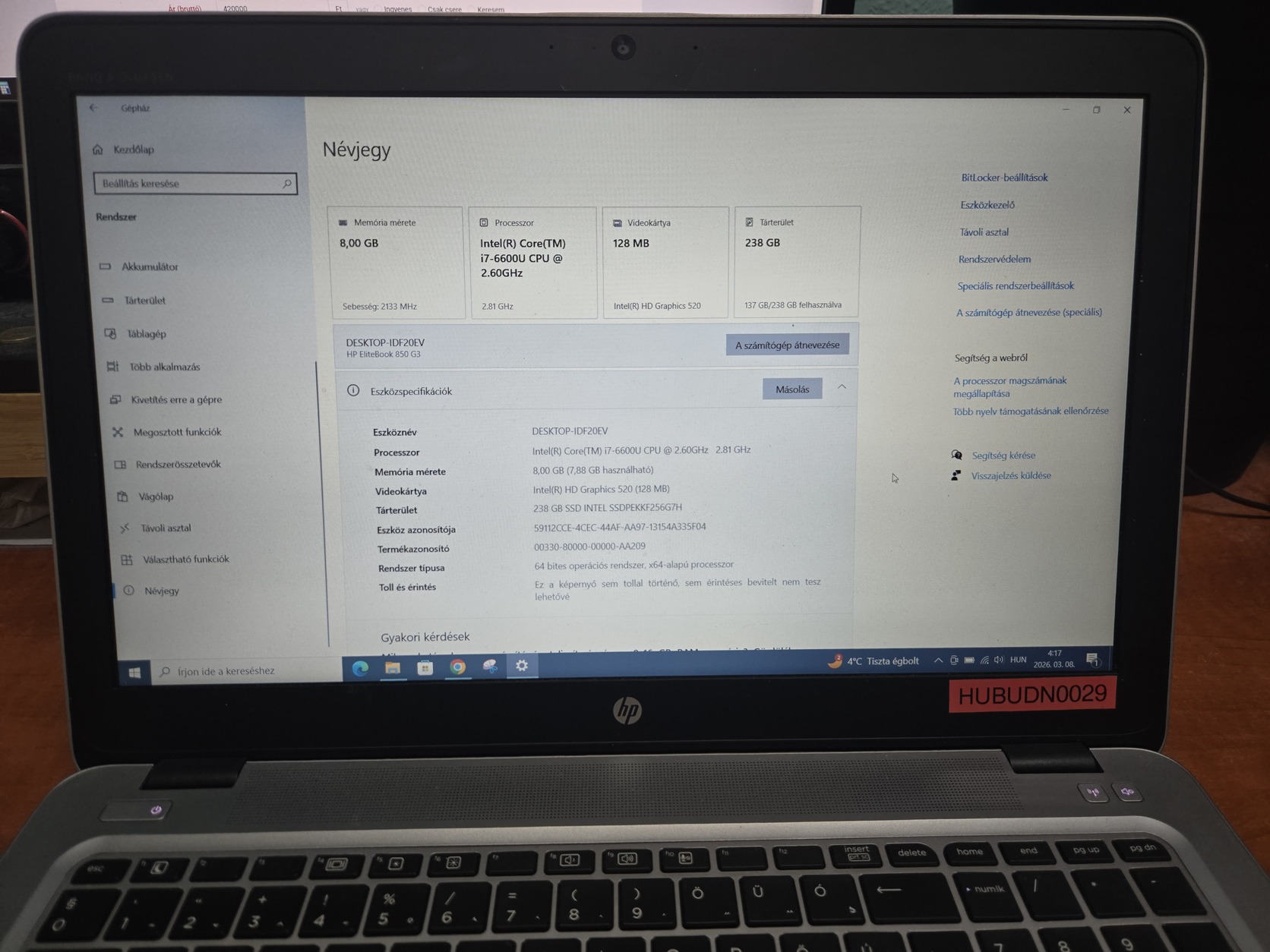 HP EliteBook 850 G3 eladó