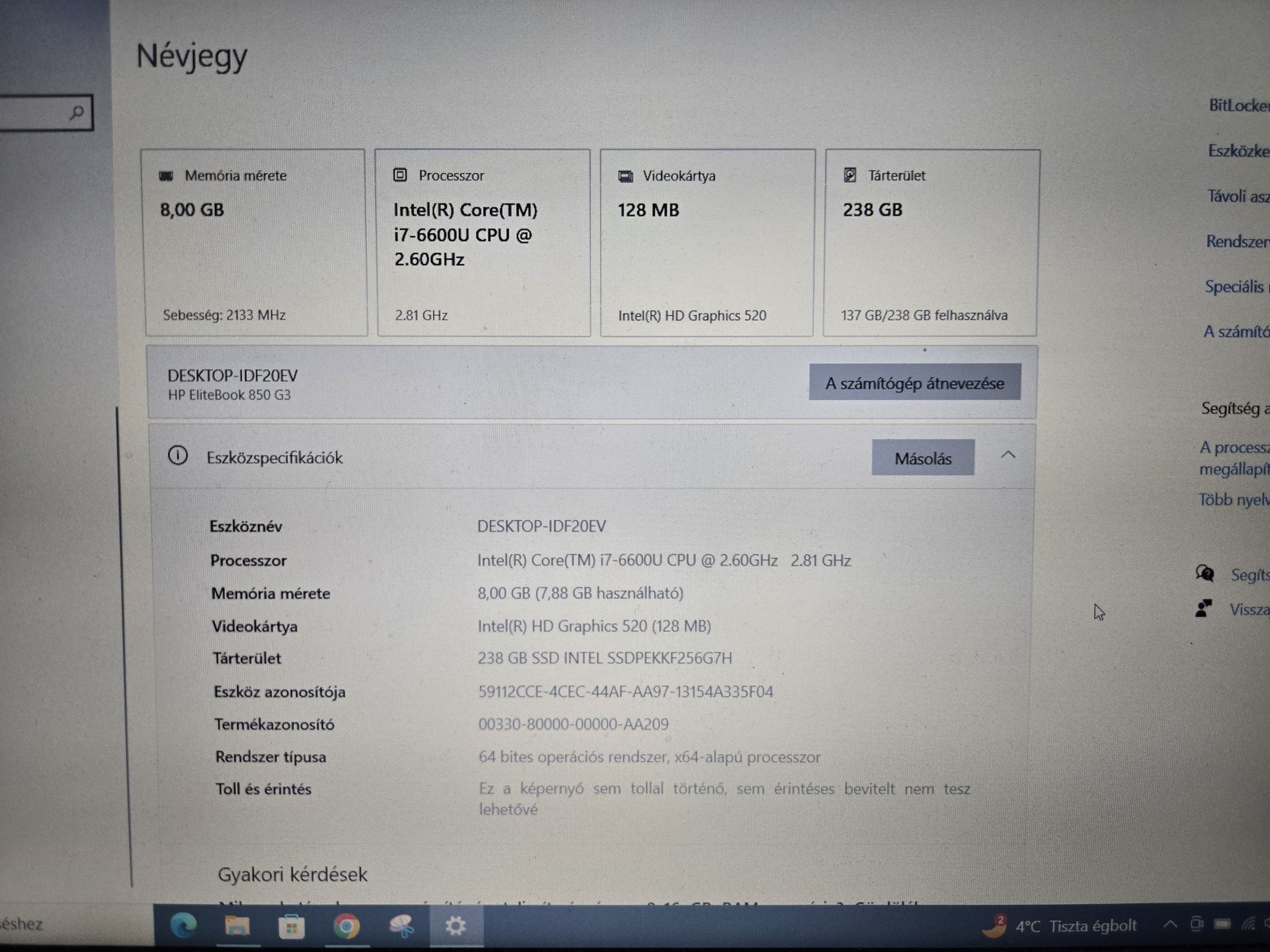 Tárhely: 250 GB SSD