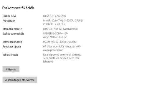 - Processzor: I5-6200U