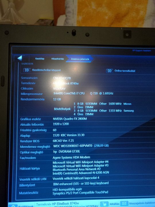 Hp Elitebook 8740w Corei7 1980*1200 17,3"-os notebook eladó. Apró esztétikai hibák a fedlapon. Nem zavaróak.