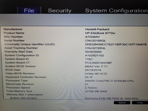 HP Elitebook 8770w i7 - 32GB RAM