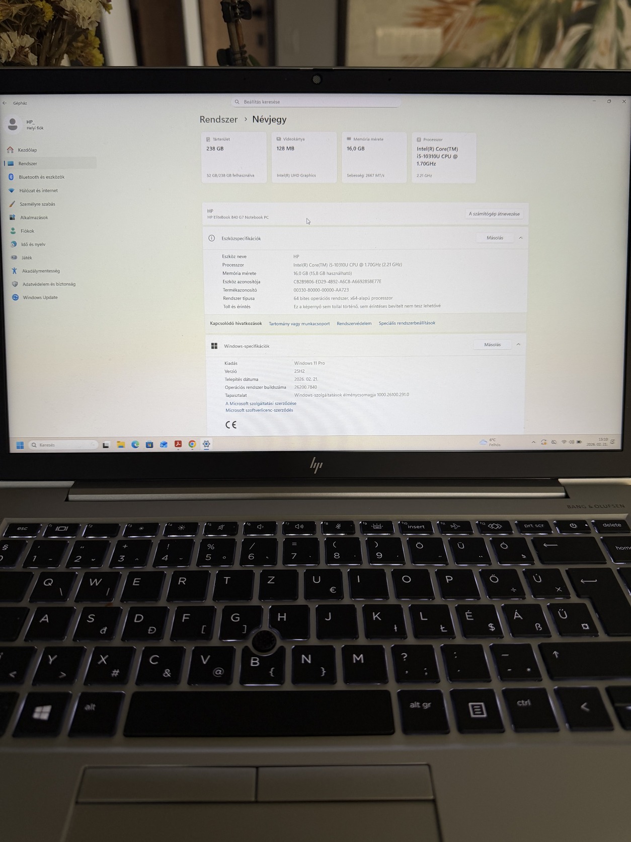 Eladó HP elitebook G7 i5 10310U 16GB ram 256GB SSD magyar világítos bill Windows 11 pro license
