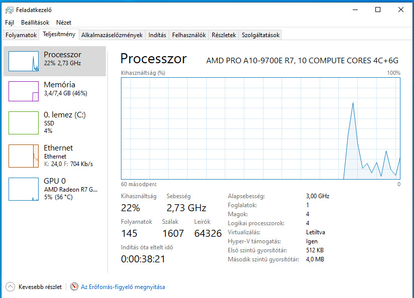 Processzor: AMD PRO A10-9700E (4 mag, 3 GHz)