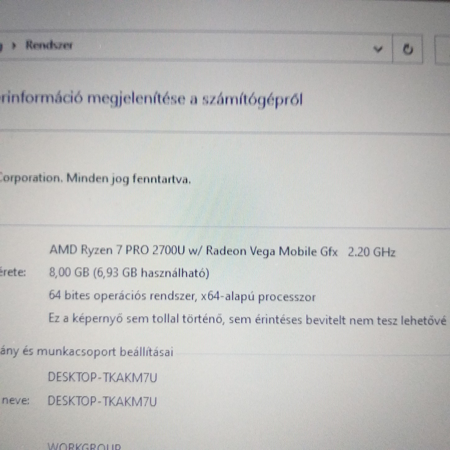 Processzor:AMD 2700U