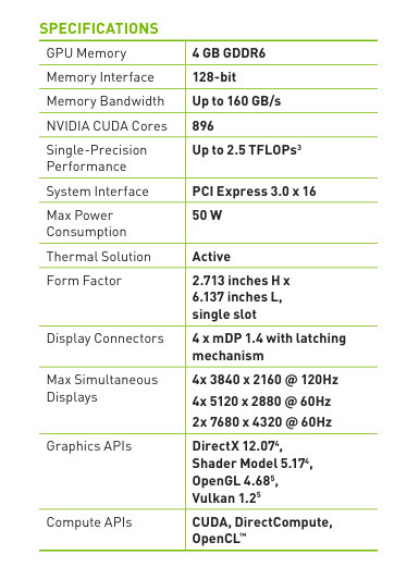 HP NVIDIA Quadro T1000 4GB GDDR6 low profile