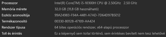 Processzor: Intel Core i5-10300H 2.50 GHz