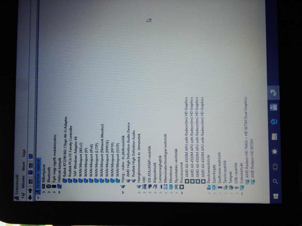 Processzor: AMD A8-4500M, 1,9GHz, 4MB Cache