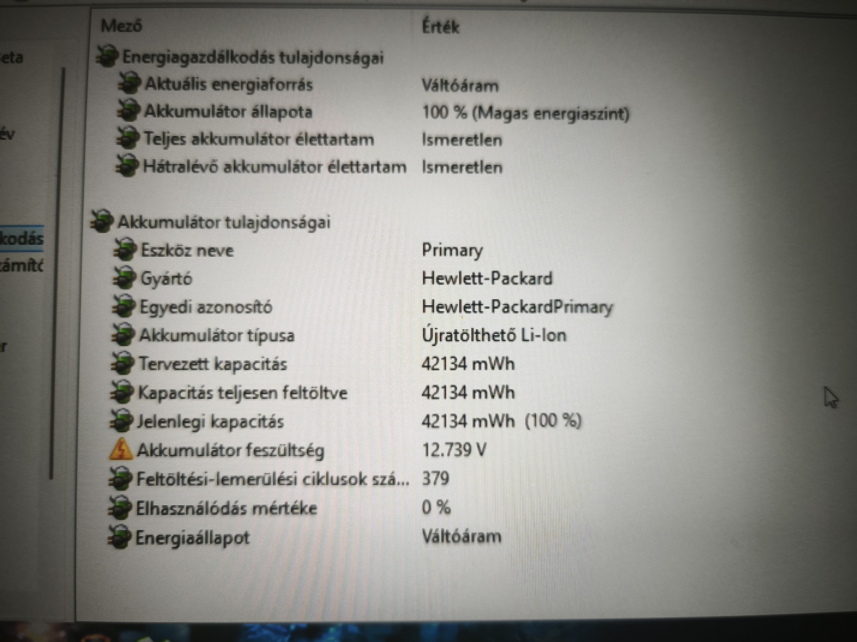 Akku AIDA szerint 0%-ban van elhasználódva, Win11 nyugalmi helyzetben 5,5 órát ír rá)