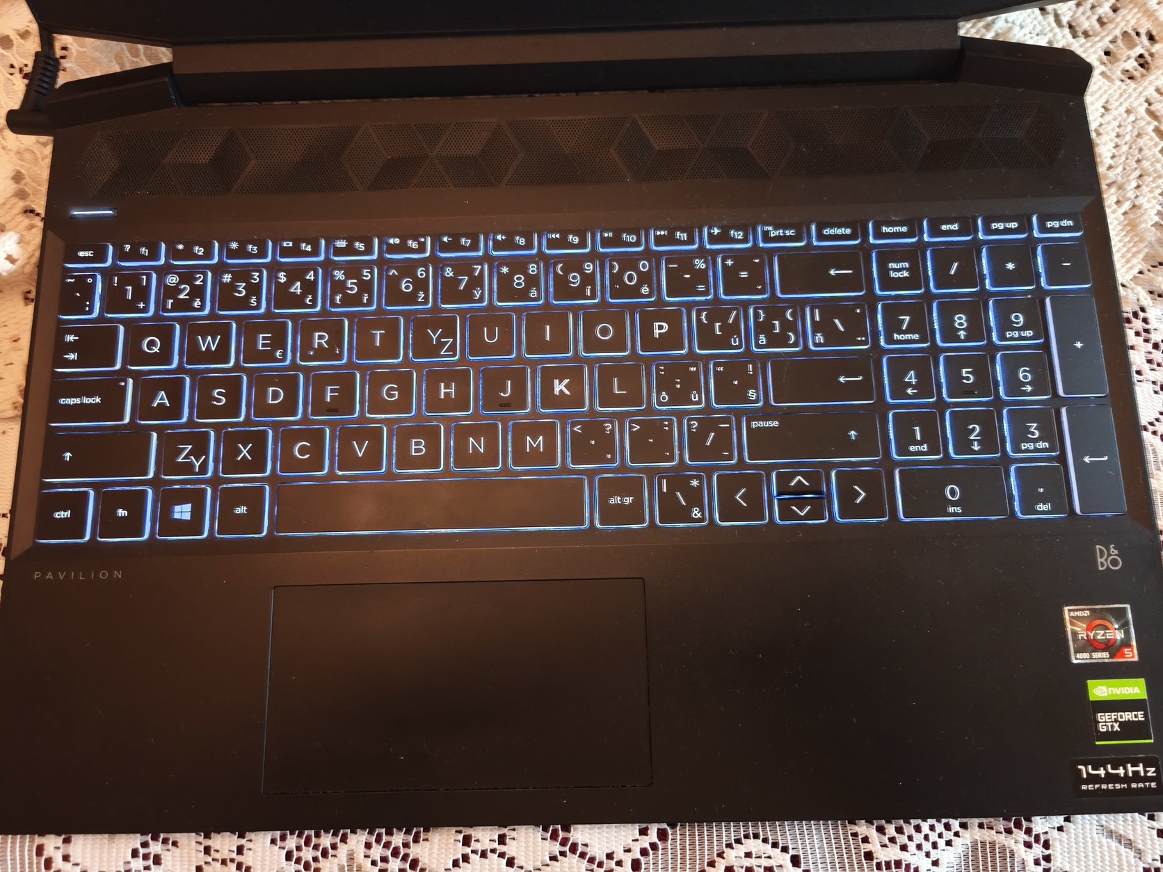 Külföldi kék háttérvilágítású billentyűzet az összes ékezetes betűvel (Í a bal nyíl mellett van)