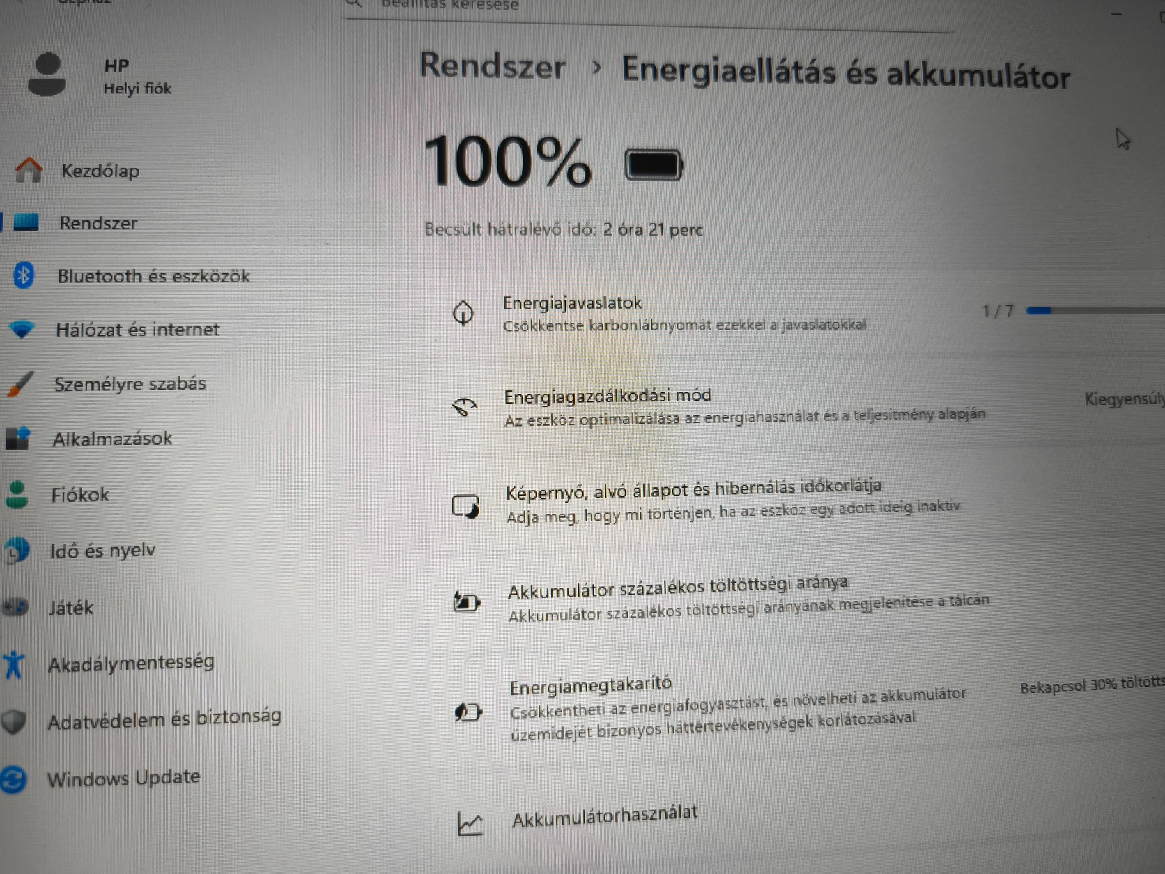 Akku AIDA szerint 0%-ban van elhasználódva, Win11 nyugalmi helyzetben 5,5 órát ír rá)