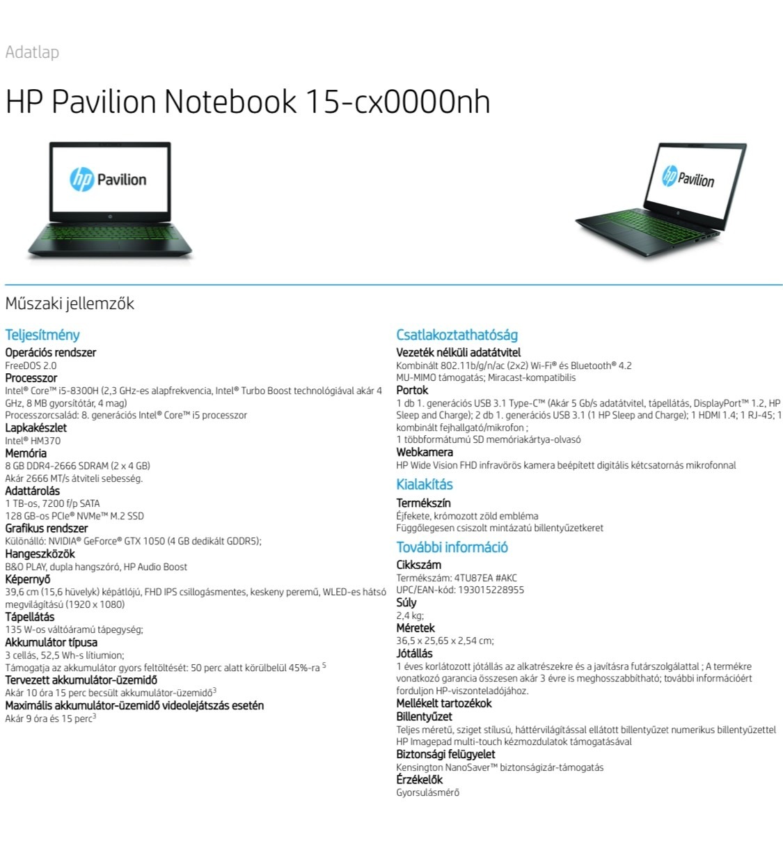 Eladó kihasználatlanság miatt a fent említett 15-cx0000nh sorozatú laptopom. A gép hibátlanul működik, állapota nagyon szép, maximum egy áttörlést igényel. Akksija korához képest jobb állapotban van, töltés nélkül is lehet használni. Tápkábellel. A III. és XXI. kerben személyesen is át tudom adni akár napközben is, megbeszélés után.
