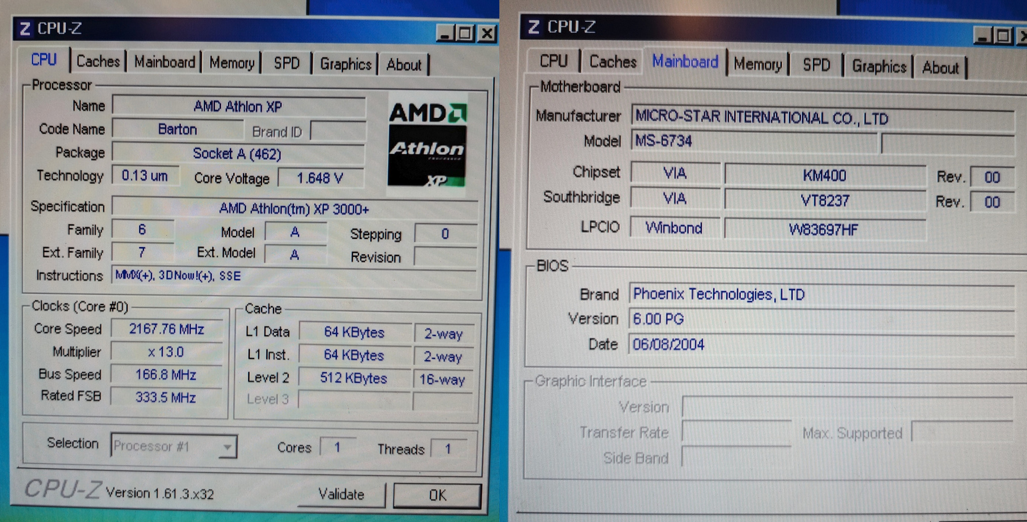 HP Pavilion socket 462 konfig: MSI KM4M alaplap + Athlon XP 3000 + 512M Ram