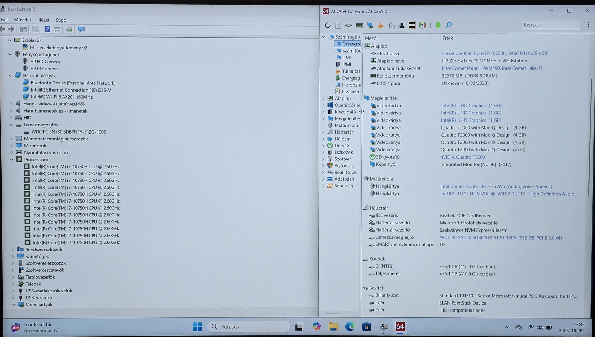 - Videokártya: Nvidia Quadro T2000 4GB DDR6 + Intel UHD Graphics