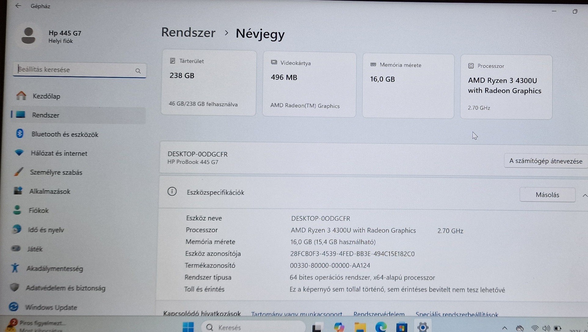 Eladó egy szép állapotú, megbízható és gyors HP ProBook 445 G7 üzleti laptop! Ideális irodai munkára, tanulásra, otthoni használatra – modern megjelenés, csendes működés, stabil teljesítmény!