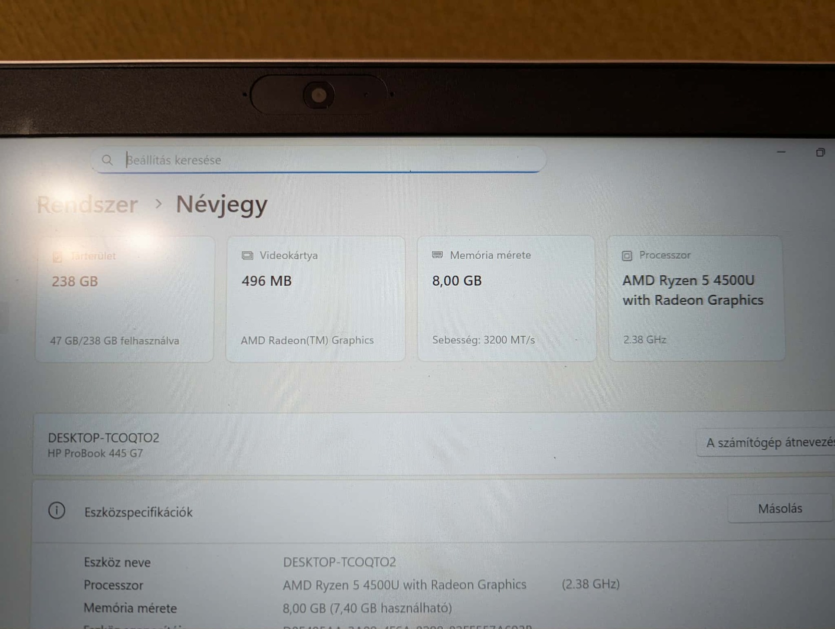 Eladó egy használt állapotban lévő HP Probook 445 G7 laptop. A laptop működése hibátlan. Az állapota is egész jó, de vannak rajta karcok és egy kis hiba az egyik sarkán. De ezek nyilván nem befolyásolják a működését és használatát.