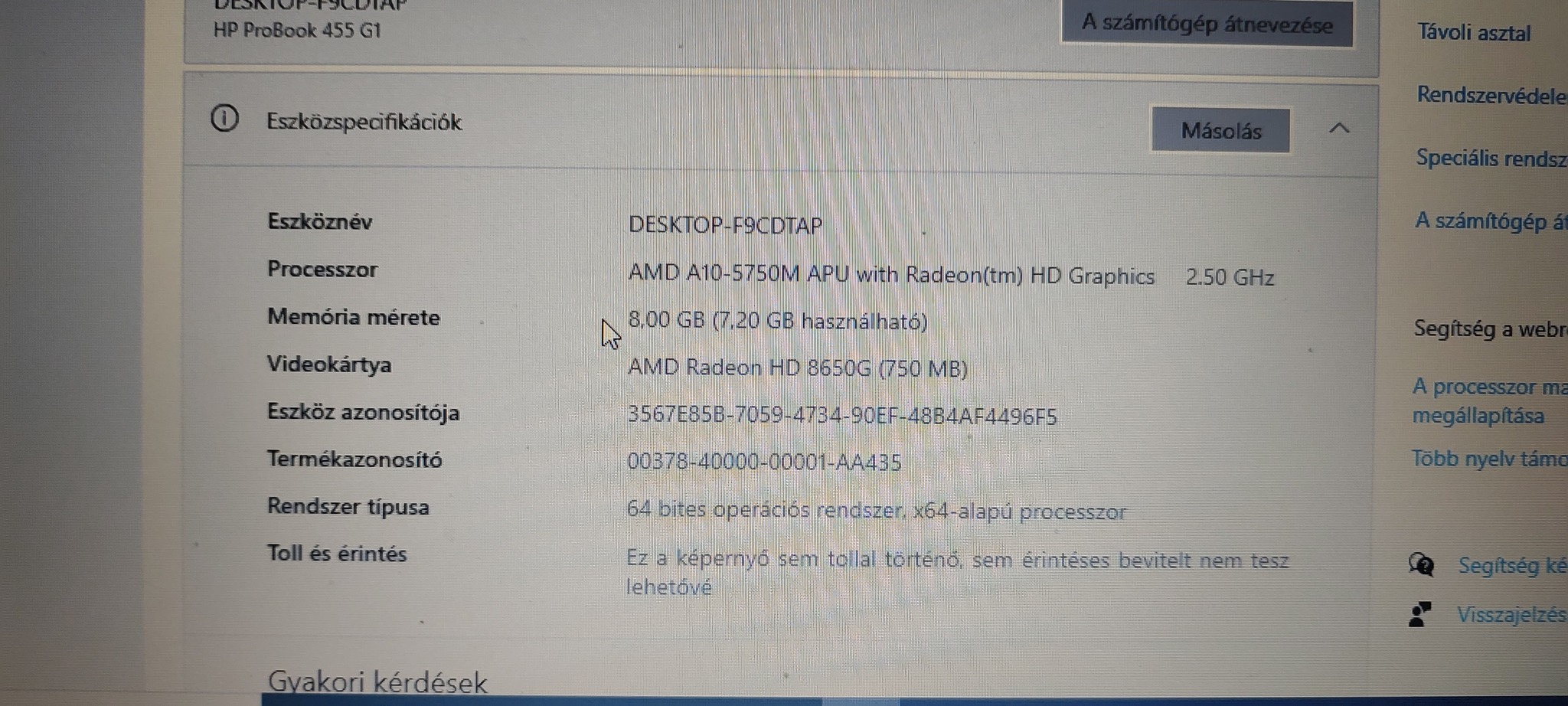 Eladó egy tökéletes állapotban lévő Hp probook 455g1 laptop. AMD A10 5750 -APU, 15,6" kijelző, 8gb dd3, 256gb evo 860 ssd, 2-5 órás akkumulátor+ töltő.