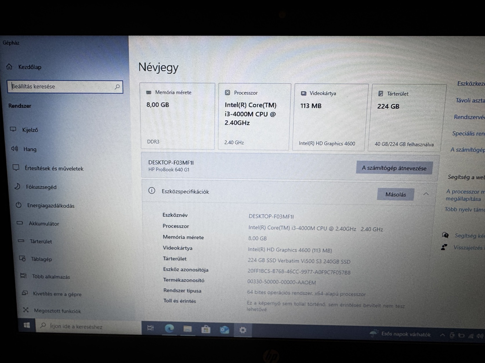 Eladó a képen látható laptop. Adatok a képeken látható. Töltő nincs, akkumulátor 3+ óra. Feltöltve kerül átadásra.