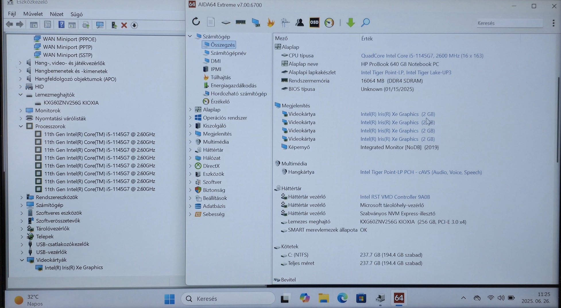 - Háttértár: 256GB NVMe SSD